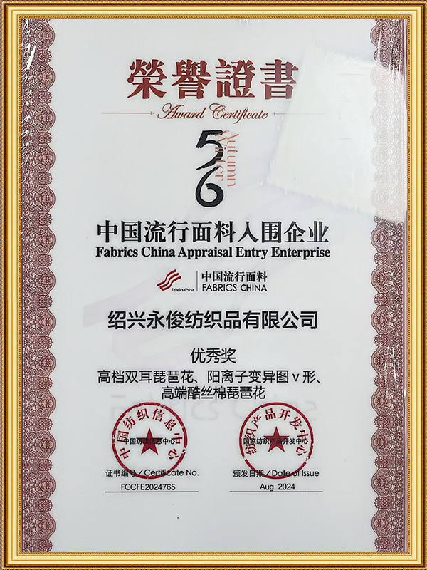 Компания профессионально занимается производством и разработкой подкладочных и женских тканей, устанавливая различные стандарты качества для удовлетворения потребностей клиентов. Бренд «Yongjun» был зарегистрирован в 2006 году, а бренды «Jingjun» и «Yuedu» — в 2018 году. Компания идет в ногу с потребностями клиентов и тенденциями рынка в области исследований и разработок, уделяя особое внимание производству на основе заказов. Интегрируя торговлю и производство посредством операций по производству пряжи и серой ткани, компания гарантирует, что ее возможности поставок не будут ограничены.